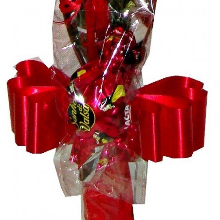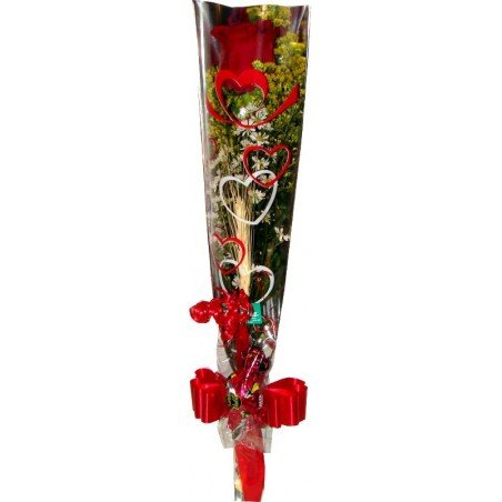 Composição: Botão de rosa com trigo, tango aster e um bombom sonho de valsa, para adoçar quem recebe de presente.