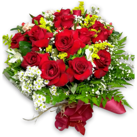 Buquê com 18 rosas abertas