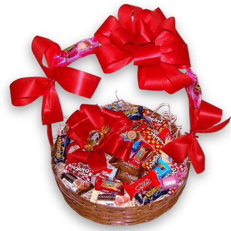 Cesta com 2 cx de bombons sortidos (podendo ser Nestlé ou Lacta, depende da disponibilidade do produto na floricultura) - 1587