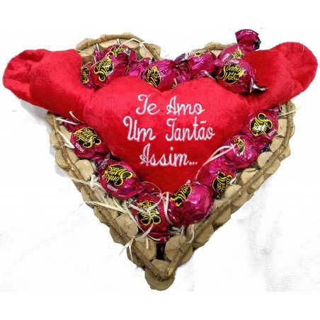 Coração de pelúcia no cachepot com 15 bombons sonho de valsa- 3328