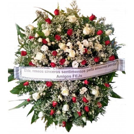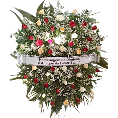 Coroa composta por 4dz de rosas, áster, tango e folhagens.