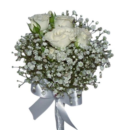 Buquê com rosa spray ou mini rosas e gipsofila.