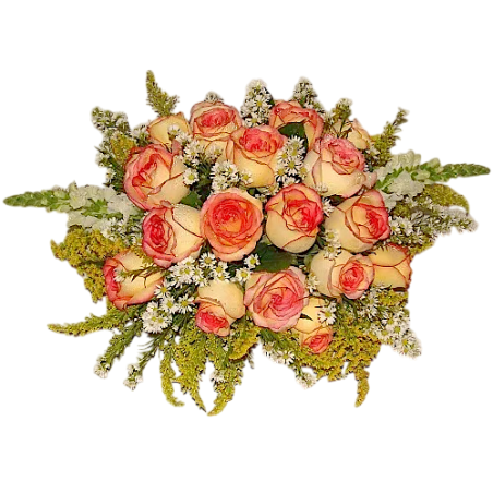 Arranjo com rosas 18 rosas, boca de leão, tango, áster e folhagens - 1210