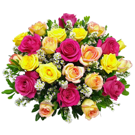 Arranjo de mesa com 7 rosas importadas, 17 rosas nacionais e folhagens- 1212