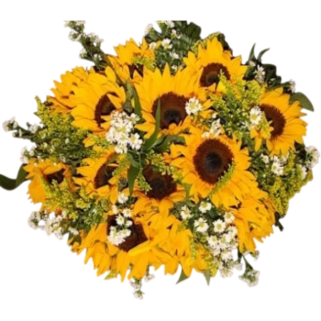 Arranjo de mesa com 12 girassóis, áster, tango e folhagens - 1226