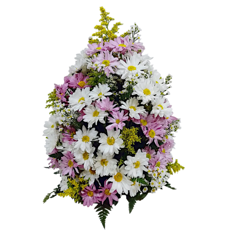 Arranjo de mesa cone com flores do campo, tango, áster e folhagens - 1240