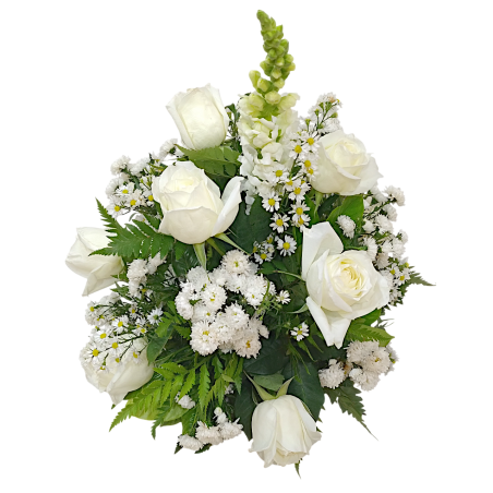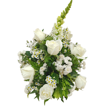 Arranjo cone com 9 rosas, boca de leão, tango, áster e folhagens - 1256