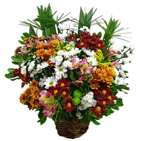 Arranjo no cachepot com flores do campo, tango, áster e folhagens - 3867
